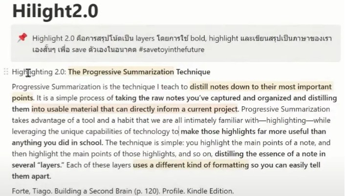 ซึ่งหลักการย่อยจากการอ่าน ในการจดโน้ต ให้เราเลือกจุดที่สำคัญที่สุด ด้วยหลักการ Progressive Summarization ซึ่งได้แก่
