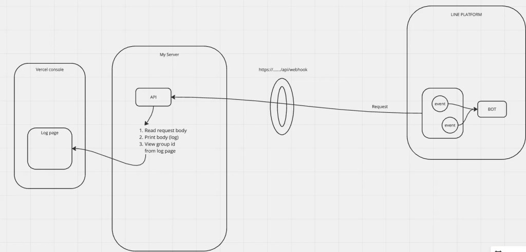 ขอแปะรูปเพื่อให้เข้าใจภาพรวม ของการทำงานกับ Line Webhook เพื่อ GET Group ID กันก่อน