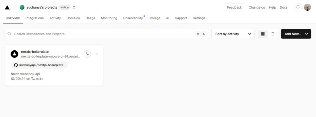 - สร้าง Server สำหรับการทำ API [vercel]: https://vercel.com/new/suchanyas-projects โดยการ Log-in ผ่าน Github และ vercel จะสร้าง repo อัตโนมัติ