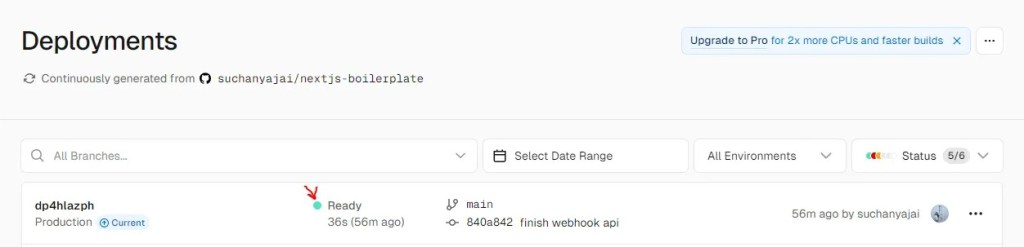 3. จากนั้น Commit&Push ขึ้นไป จะได้ Step การ Deplyments ใหม่ รอจนกว่าจะ Ready