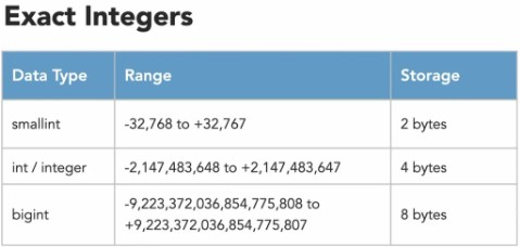 *** Note: tinyint ใน ANSI SQL จะเก็บตัวเลขระหว่าง -128 ถึง +127 ***