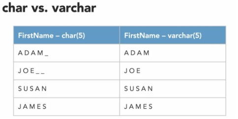 Char ความยามต้องคงที่ จึงเติม อักขระพิเศษ เข้าไปด้วย แต่ varchar ไม่เติม จะเป็นตัวอักษรอย่างเดียว